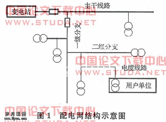 (1)配电网信息的区域性:在配电网中,变电站和用户是网中的结点,可以用点来表示,配电线路是供电路径,可以用线来表示,由不同的点和线构成了配电网的分布区域。配电网的分布呈拓延结构,表征了配电网信息的区域性。