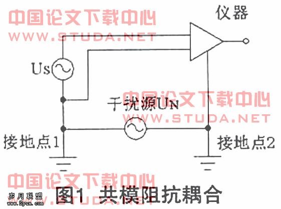 如图1所示,当2个或多个电路共用1条线或1个连接点时,将可能产生共模阻抗耦合干扰,干扰水平取决于共模阻抗幅值。