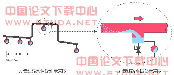 管线疏水是针对蒸汽传输过程中由于热量的不断损失在某些部位产生凝结水的疏水问题,特别是蒸汽流动缓慢甚至完全停止流动的部位(管线盲端或处于关闭状态的热后备设备供汽管线等),管线凝结水积存是水锤的成因,会给管道及设备带来危害。国外有关规程规定:任何蒸汽管线沿管长平均每隔30~50米应设置疏水点,在设计中管线形成的谷点、盲端及有可能关闭的设备进出口处也应设置疏水点。由此可见管线疏水的重要性。