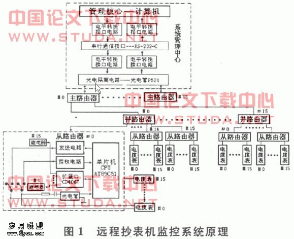 图1是远程抄表机监控系统的原理框图。它主要由以计算机为核心的系统管理中心、路由器和智能电度表共同组成。