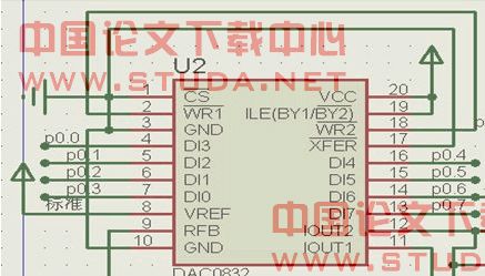系统设置D/A转换接口,采用8位模数转换器DAC0832。其电路如图5.