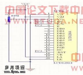 本方案采用YM12864型lcd,可直接显示4*8个汉字,界面友好,支持串并行两种连接方式,其电路连接如图10所示: