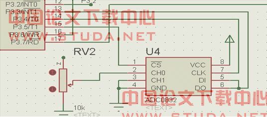 如图所示,当此2 位数据为“1”、“0”时,只对CH0 进行单通道转换。当2位数据为“1”、“1”时,只对CH1进行单通道转换。当2 位数据为“0”、“0”时,将CH0作为正输入端IN+,CH1作为负输入端IN-进行输入。当2 位数据为“0”、“1”时,将CH0作为负输入端IN-,CH1 作为正输入端IN+进行输入。到第3 个脉冲的下沉之后DI端的输入电平就失去输入作用,此后DO/DI端则开始利用数据输出DO进行转换数据的读取。从第4个脉冲下沉开始由DO端输出转换数据最高位DATA7,随后每一个脉冲下沉DO端输出下一位数据。直到第11个脉冲时发出最低位数据DATA0,一个字节的数据输出完成。也正是从此位开始输出下一个相反字节的数据,即从第11个字节的下沉输出DATD0。随后输出8位数据,到第19个脉冲时数据输出完成,也标志着一次A/D转换的结束。最后将CS置高电平禁用芯片,直接将转换后的数据进行处理就可以了。