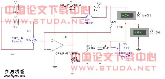 一般的直流稳压电源是用可变电阻来实现输出电压的调节,那么要在直流稳压电源的基础上实现数字控制的话,实际上很简单,我们只要将可变电阻换成数字控制部分来代替,就能实现数控恒压源这一课题。所以,首先要做的,就是选择合适的稳压输出电路并对其可行性进行了仿真。如图9,很容易就验证了此稳压输出电路的可靠。