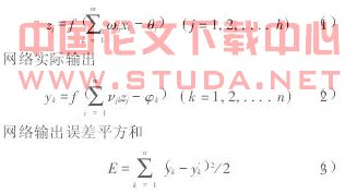 当给定一输入模式X=(x1,x2,….,xm)和希望输出模式Y=(y1,y2,…..,yn)时,网络的实际输出和输出误差可用下列公式求出: