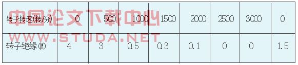 4.1前几年,我厂接连出现发电机转子绝缘降低,严重影响了发电机的正常运行。发电机转子的正负极对地最高电压达到180-200伏,针对出现的这种问题,我们采取了除拔护环之外的所有方法,但效果都不明显,并且出现了一种异常现象,也就是在冷态情况下转子绝缘合格,在热态情况绝缘下降,并网后,出现绝缘不合格。我们在5号发电机上做试验,从冷态到额定转速3000转/分,出现下列数据: