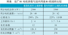 笔者把该r1上辊电机的设计参数与国内同类热轧r1轧机的参数进行比较,如附表所示。该厂r1上下辊电机的转动惯量小,大约只有国内同类r1轧机的55%,从而整个r1上辊机电总转动惯量也明显减小。这样的优点是减小了电机的体积与制造成本,可以满足更高动态要求。但是当电机的转动惯量减小,即图6中gd2减少,当承受冲击负荷时动态速降增加,对板形及轧机的稳定运行带来一定的影响,甚至会卡钢。