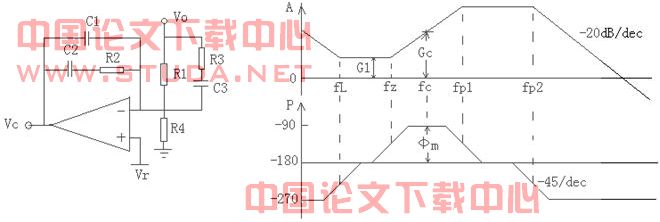 fL使低频增益加大,提高稳压精度;fz引入相位超前补偿,增加相位裕度;fp1、fp2使高频干扰衰减。注意满足:R1>>R3,C2>>C1。