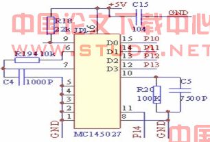 R2、C2组成的电路用来检测按接收到的末位信号,时间常数R2C2应等于33.5*编码时钟周期,即