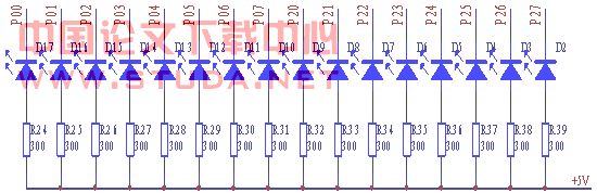 经过解码电路后我们采用的是单片机进行译码,这样不仅硬件电路利于扩展,而且还使电路看起来简单。用P1口的P10--P13来作为经过解码后的单片机的输入,然后通过对其编程实现译码,译码后用P0和P1口共16个引脚来作为译码后的输出去控制利用发光二极管作成的开关显示部分。