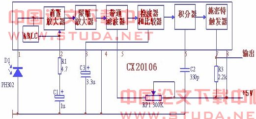 图3-6 CX20106构成的红外接收电路