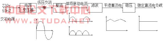 (2)滤波电路:利用电感和电容的阻抗特性,将整流后的单向脉动电流中的交流分量滤去,是单向脉动电流变换成平滑的直流电。