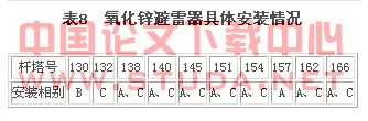 考虑到杆塔的海拔高度、地形地貌以及避雷器的保护范围,并且考虑到水平排列的三相的中间相(B相)基本上不会遭受直击雷,而三角形排列的顶相由于易遭雷击而需安装避雷器(如130 号杆)等原则,在杆塔上装设了复合绝缘外套氧化锌避雷器,具体安装情况见表8。