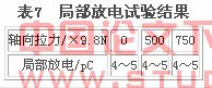另外由于避雷器长期悬挂于线路上并承受相电压的作用,我们在避雷器的型式试验中增加了在避雷器施加拉力试验过程中的局放试验,试验时取110kV避雷器一支,轴向施加静态机械负荷,施加拉力分别为500kg,750kg,在此负荷状态下施加1.05倍Uc,测量避雷器的局部放电,试验的结果见表7。