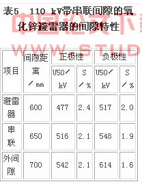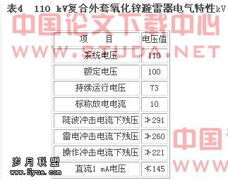 国际上,美国、日本、俄罗斯等国已大量使用复合外套氧化锌避雷器,在美国的公路上随处可见运行中的配电变压器都带有复合外套氧化锌避雷器,据统计美国己有上千万只复合外套氧化锌避雷器在电网中使用,日本也有百万只复合外套氧化锌避雷器在电网中使用。随着我国硅橡胶技术的发展,我国也相继研制成功了110kV、220kV的复合外套氧化锌避雷器,表4是北京某公司研制的110kV复合外套氧化锌避雷器的电气特性。