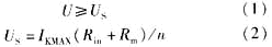 式中:U-继电器整定值;US-保证不误动的电压值;IKMAX-启动电流值;