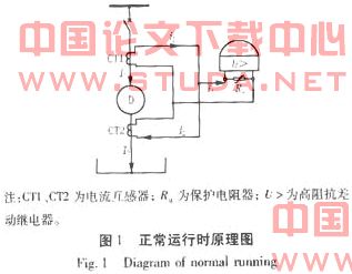 (1)正常运行时:原理图见图1,∵I1=I2 ∴ij=i1-i2=0. 因此,继电器两端电压:Uab= ij×Rj=0. Rj-继电器内部阻抗。