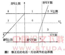 根据上面推导出的数学模型,可以得到修正后的电压?无功双参数调节的模糊边界,如图2所示。