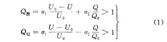 组织级是本系统的最高级,承担着最优决策的功能。当前变电站综合控制大部分仍是按照传统的九区控制方法,利用电压和无功功率双参数将变电站运行状态分为九个区,根据各个区所对应的控制方案进行调节。但是,在该控制系统中,无功调节判据是一个与电压无关的平行于电压坐标轴的固定边界,没有充分考虑无功调节与电压调节相互间的协调关系。根据“保证电压合格,无功基本平衡,尽量减少调节次数”的变电站电压和无功综合调节的基本原则,无功调节边界应当是一个受电压状态影响,且在一定范围内服务于电压调节的模糊边界。因此,我们对传统的控制策略也作了改进,引入了无功调节判据,提出了模糊边界的无功调节。基于电压与无功的相互影响,对电容器组的投切判据建立如下数学模。