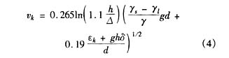 原型沙和模型沙(电木粉)的起动流速均采用窦国仁公式[2]: