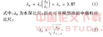 在用模型研究悬沙运动问题时,为了使流道中泥沙的淤积相似,模型沙的选择应使其符合沉降相似条件,其沉降速度比尺:
