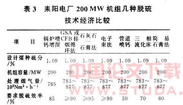 同样计算出耒阳电厂200 MW机组在燃煤含硫1.09%时的几种脱硫技术经济比较结果见表3。