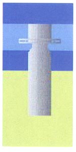 在混凝土基础技术中,整个基础的投资大约与水深的平方成比例。Vindeby和Tunoe Knob的水深变化范围在2.5~7.5米之间,说明每个混凝土基础的平均重量为1050吨。根据这个二次方规则,在水深10米以上的这些混凝土平台,因受其重量和投资的限制,混凝土基础往往被禁止采用。因此,为了突破这种投资障碍,有必要发展新的技术。