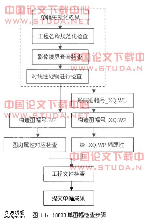 一幅图矢量化后就应该立即进行检查,按照建库标准,将必需的属性结构中内容补充完整,并对单图幅工程文件检查合格后,方可进入建库阶段。其检查步骤如图1所示: