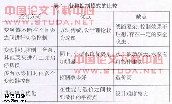 摘要:文章介绍了恒压供水系统的基本原理,重,最讨论了多泵系统中变频器与水泵之间的控制模式问题。就变频器数量的确定,控制方式的选择。水泵问的切换方式进行了进一步的分析。