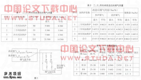经加热炉一般采用混合煤气作为燃料即能完全满足加热工艺的要求,热值范围在1400kcal/Nm3~2200 kcal/Nm3左右,长钢现有高炉煤气热值为800 keal/Nm3,焦炉煤气热值为4200kcal/Nm3左右。车间改烧混合煤气后,炉型结构不需变动、助燃风机不需要更换,可满足混烧工艺要求,只需要更换加热炉燃烧系统的烧嘴和烧嘴砖,并对炉前空、煤气管道进行局部改造即可。投资小、见效快、施工周期短。