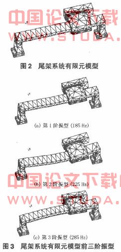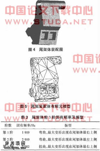 由表2可知尾架的频率得到了很大的提高,振型也有了很好的改善。