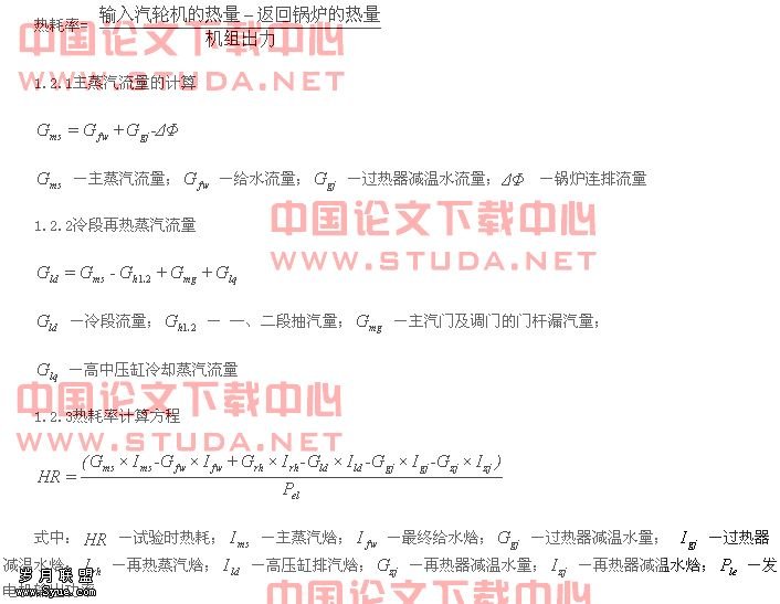 对主蒸汽流量G ,通用的国内和国际标准都是以测量凝结水流量为基础。再加上除氧器及各级高压加热用的汽轮机抽汽量,减去再热减温喷水量、给水泵水封泄漏量、除氧器排空量和系统不明泄漏量,另外还要考虑凝汽器热井、除氧器水箱和汽包水位变化引起的等效流量变化。若采用简化规程,则因测量的是最终给水流量,主蒸汽流量G 的计算与上述情况稍有不同。