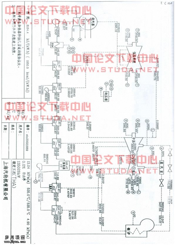 冷再热蒸汽流量是从主蒸汽流量减去从高压缸抽、漏出系统的流量;如:主汽阀及调节阀的阀杆漏汽,从高压缸抽出的回热加热抽汽及高压缸的轴封漏汽等。