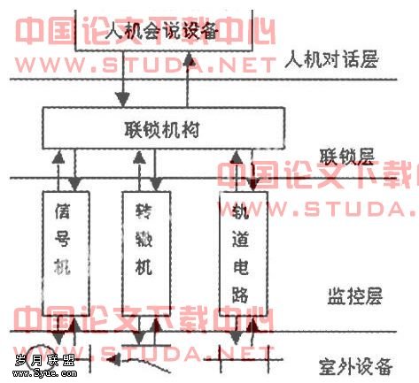 联锁系统监控层的主要功能是接受联锁层的控制命令,经过信号机控制电路改变信号显示,接受来自联锁层的道岔控制命令,经过道岔控制电路驱动道岔转换,向联锁机构传输信号状态信息及轨道电路信息。