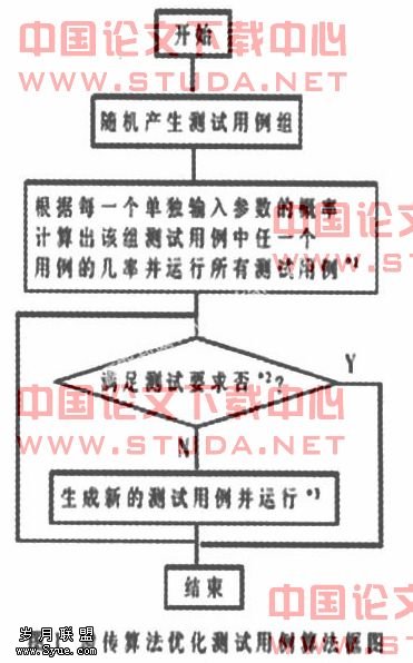 (2)检验是否满足测试要求时,需要先设置一个计数器。每运行一个新的测试用例,测试计数器加一当发现第一次失效或故障时,计数器加二。若产生的后代又使软件发生失效,则计数器加22。同理递推,当遗传算法产生的测试用例连续n次使软件失效, 则计数器加2n。同时,记录所有的测试情况(此工作由外围的测试环境完成,比如北大的青鸟黑盒测试环境)。如果出现严重错误则终止测试,进行对程序的检查。如果连续K代测试用例的后代都运行良好,计数器的值加2K。K的值由具体被测试软件的等价类数量、输入参数个数等决定。当测试计数器的值达到所有黑盒测试用例等价类的数值时,结束测试也必须结束。