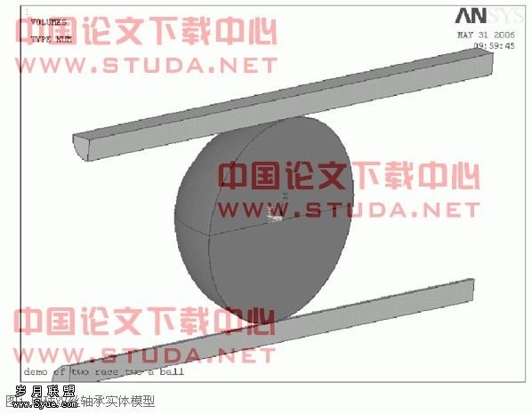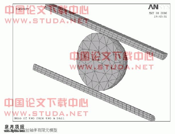 由于钢丝滚道球轴承结构较复杂,为了建模分析方便,同时为了突出观察得主要内容。首先考虑对滚动体与相对的两根钢丝滚道这种简单情况进行建模仿真。