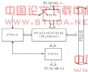 由PCI总线控制器,FPGA,FIFO等模块组成。PCI总线控制器实现PXI总线接口,FIFO作为数据输入输出的缓存器件,经FPGA控制后实现局部总线数据的读写操作。具体的结构如图2-2。