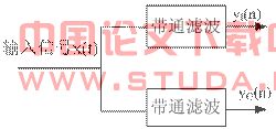 如图3-9所示,数字正交解调 [19][20][21]将输入信号通过2路带通滤波即可。现在的关键问题就是数字带通滤波器的设计。由于短波信号的频率范围是1.5~30 MHz,而前端模拟下变频之后为定频10 MHz,而单个信道的宽度不超过100 KHz,所以此