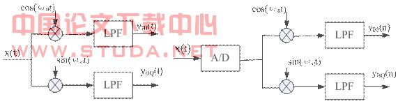 图3.8 正交解调的模拟和数字方法原理框图