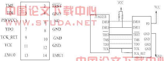 图3-5 JTAG引脚定义图 图3-6 C6000与JTAG连接图