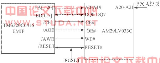 图3-4 EMIFB与FLASH硬件连接图