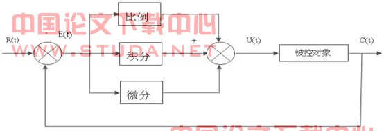 连续PID控制器也称比例-积分-微分控制器,即过程控制是按误差的比例(P-ProportionAl)、积分(I-IntegrAl)和微分(D-DerivAtive)对系统进行控制,其系统原理框图如图5-1所示: