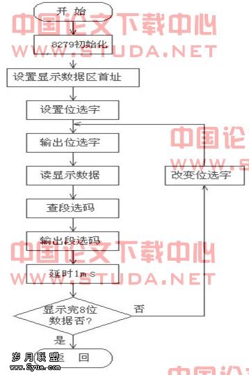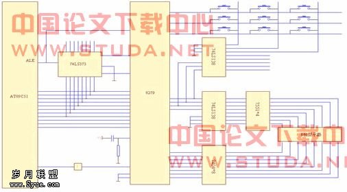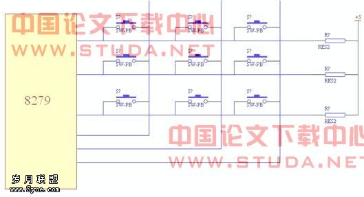 显示电路的用8279芯片来驱动,8279芯片分别接两排显示器,每排为4位显示,分别用来显示步进电机的实际转速与给定转速。