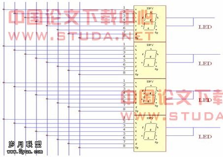 显示电路选用两排LED显示,每排分别为四位。能满足设计的要求,转速范围为0至1000。LED显示电路有两种接法,一种为共阴极,一种为共阳极。原理图如4-14所示: