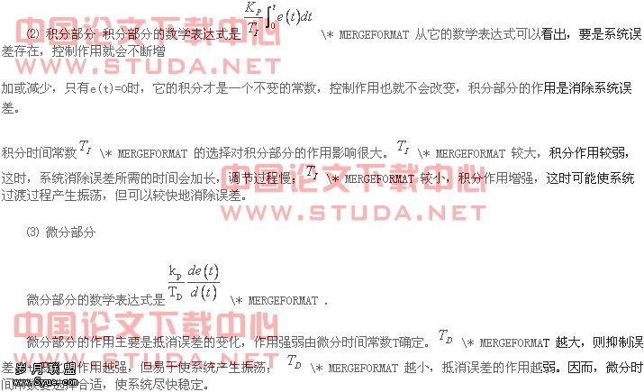 将式(2-1)展开,调节器输出函数可分成比例部分、积分部分和微分部分,它们分别是: