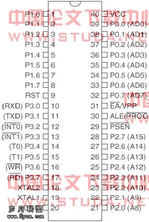 8)P0口(39-32):双向I/O口。9.P1口(1-8):准双向通用I/0口。