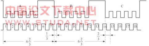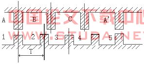 步进电机转子均匀分布着很多小齿,定子齿有三个励磁绕阻,其几何轴线依次分别与转子齿轴线错开。0、1/3て、2/3て,(相邻两转子齿轴线间的距离为齿距以て表示),即A与齿1相对齐,B与齿2向右错开1/3て,C与齿3向右错开2/3て,A'与齿5相对齐,(A'就是A,齿5就是齿1)下面是定转子的展开如图1-3所示: