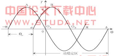 /* MERGEFORMAT ), 即改变通电状态的瞬间只要转子在这个区域内就能趋向新的稳定平衡位置,因此把后一个通电相的静稳定区称为前一个通电相的动稳定区,把初始稳定平衡点OA 与动稳定区的边界点A 之间的距离称为稳定裕度,拍数越多步距角越小,动稳定区就越接近静稳定区稳定裕度越大,运行的稳定性越好转子从原来的稳定平衡点到达新的稳定平衡点的时间越短,能够响应的频率也就越高.原理图如4-5所示: