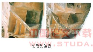 1.6.3 刮碴板的作用是将滚刀破碎的岩碴,及时排出,防止滚刀对岩碴的二次破碎,保护滚刀。前刮碴板主要铲装刀盘前方的落碴,铲装量大,磨损较快,后刮碴板主要铲装下护盾推进中从隧道底部堆积起来的碴石,铲装量小,磨损较小。