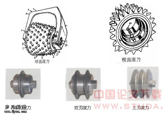 (4)镶齿硬质合金刀圈 适用于掘进硬度高达150~250MPa的花岗岩、玄武岩、斑岩及石英岩等地层。